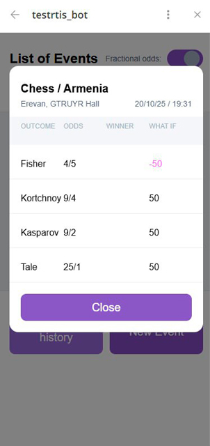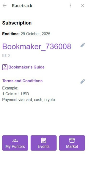 To place a bet with a on-land bookmaker, punters have always had to go to the racetrack and interact with them in person or discuss their bets over the phone. We’ve solved this problem. Now, using our Telegram app, punters can bet 24 hours a day, at any time.